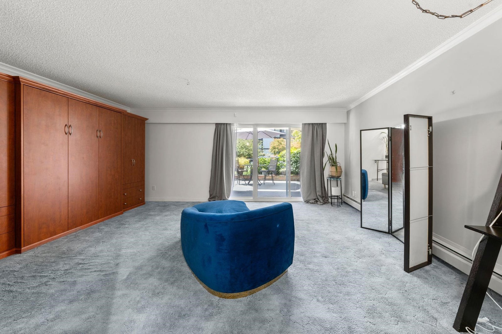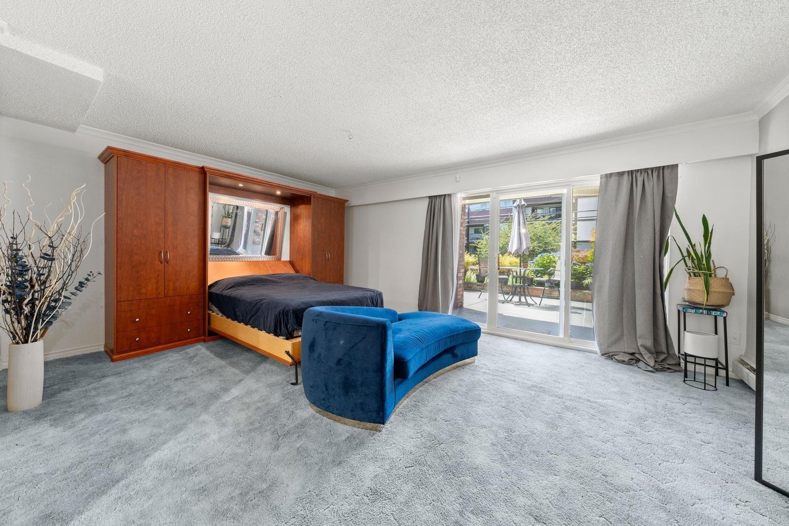 Blue Surf ground floor studio unit with large West facing patio. Exceptional location, walk to Semiahmoo Mall and close to transit. Age 50+ No Pets, No rentals, Owner receives shares in Blue Surf Holdings