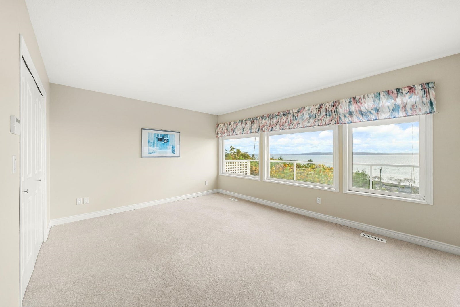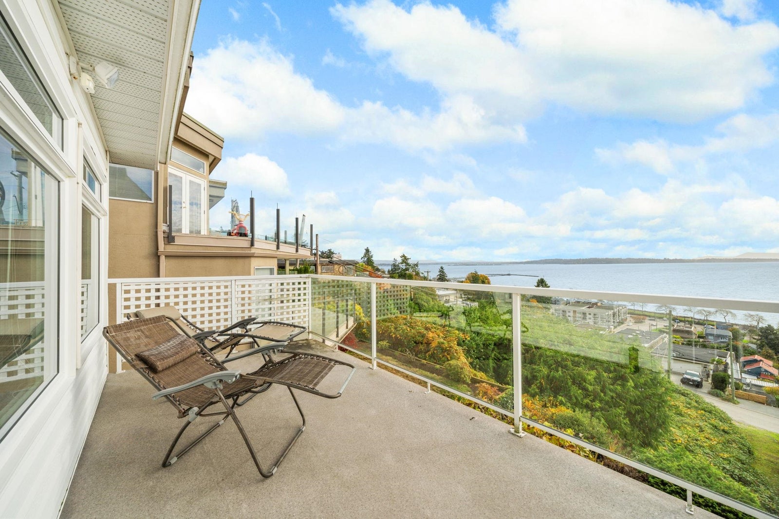 ONE OF THE FINEST PANORAMIC OCEAN VIEWS IN ALL OF WHITE ROCK stretching from Semiahmoo, the pier and San Juan Islands. Located on a coveted no thru road with no powerlines to impede your view. Features a total of 2,797 sq ft, very open main floor with views from every room. Lower floor has 3 bedrooms and an oversized 21'3 x 12' primary bedroom spanning the back of the house flowing onto it's own deck. Fully finished walk out basement contains a full bathroom, one bedroom, huge family room and roughed in suite. Low maintenance yard and detached double garage. Shows well!