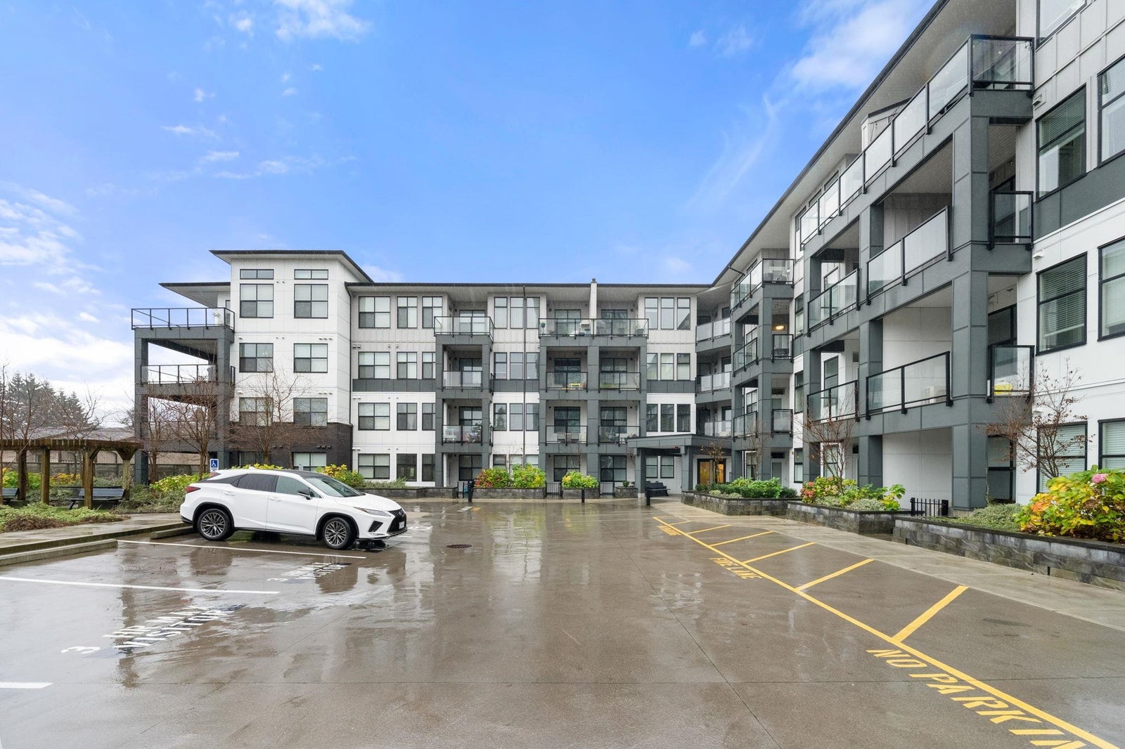 The Onxy at Mahogany, prime 3rd floor southwest corner unit! Fabulous bright and open layout with 10' ceilings, leading to an oversized 202 sq. ft. balcony with SW mountain views. Spacious Kitchen featuring stainless steel appliances, quartz counters and large island. A/C, separate storage, gym, two parking stalls and bike storage. Very central location, close to shops, easy access to HWY1 and steps to Mill Lake Park. Shows very well!!