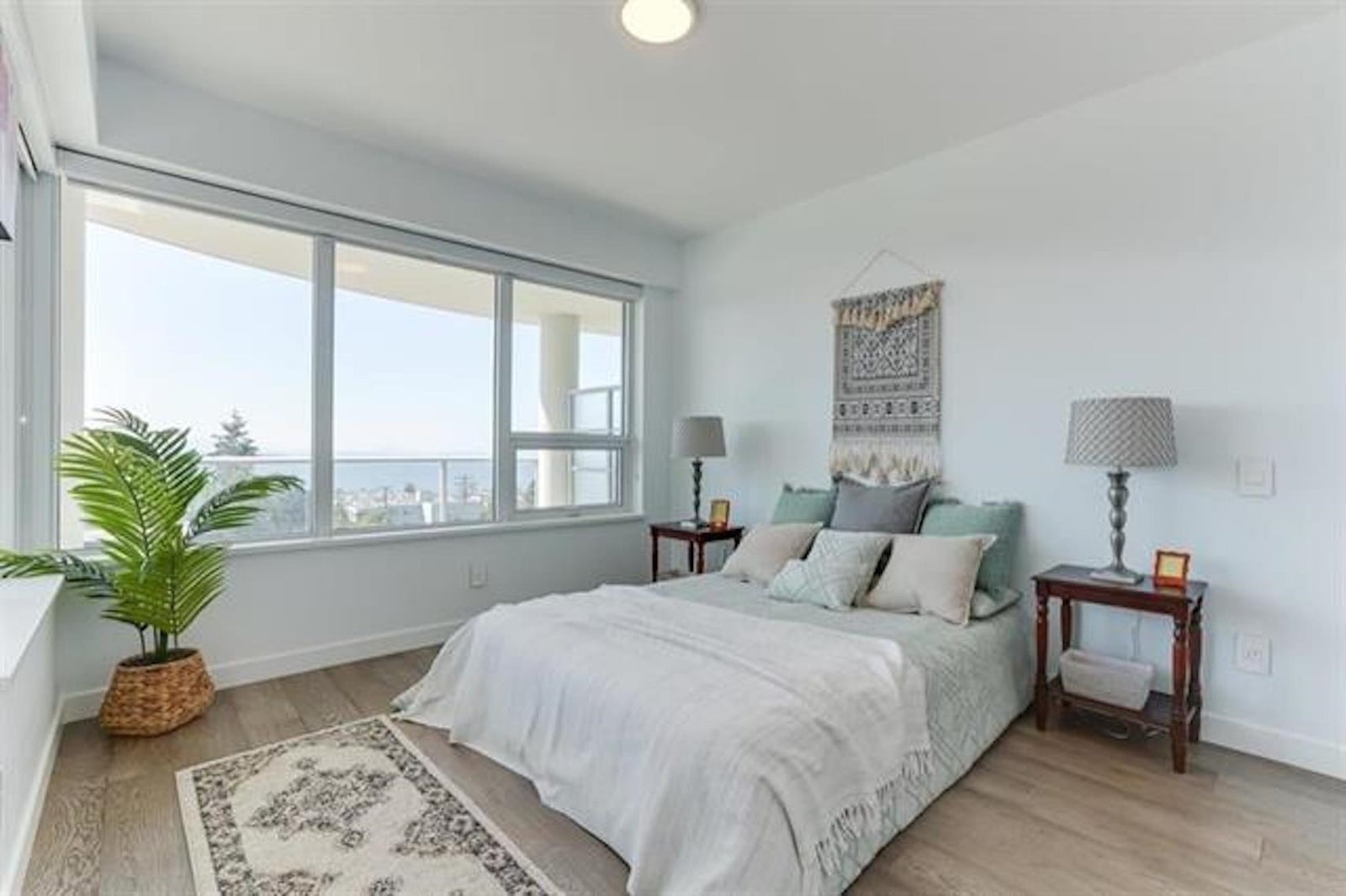 MIRAMAR VILLAGE BY BOSA. Sensational 2 bed/2 bath southeast corner unit facing south with panoramic ocean views. Spacious bedrooms on opposite side providing privacy and spectacular ocean view from the primary bedroom. Bosch appliances, stone counters and engineered hardwood floors thru out. Airconditioning, and in floor radiant heat in the luxurious ensuite. Two parking stalls and separate storage. Fantastic location, walk down to the beach, shops, restaurants and close to bus transportation. Top of the line amenities featuring a 15,000 sqft roof top terrace, gym, putting green and outdoor pool/hot tub overlooking the Ocean. Shows very well!