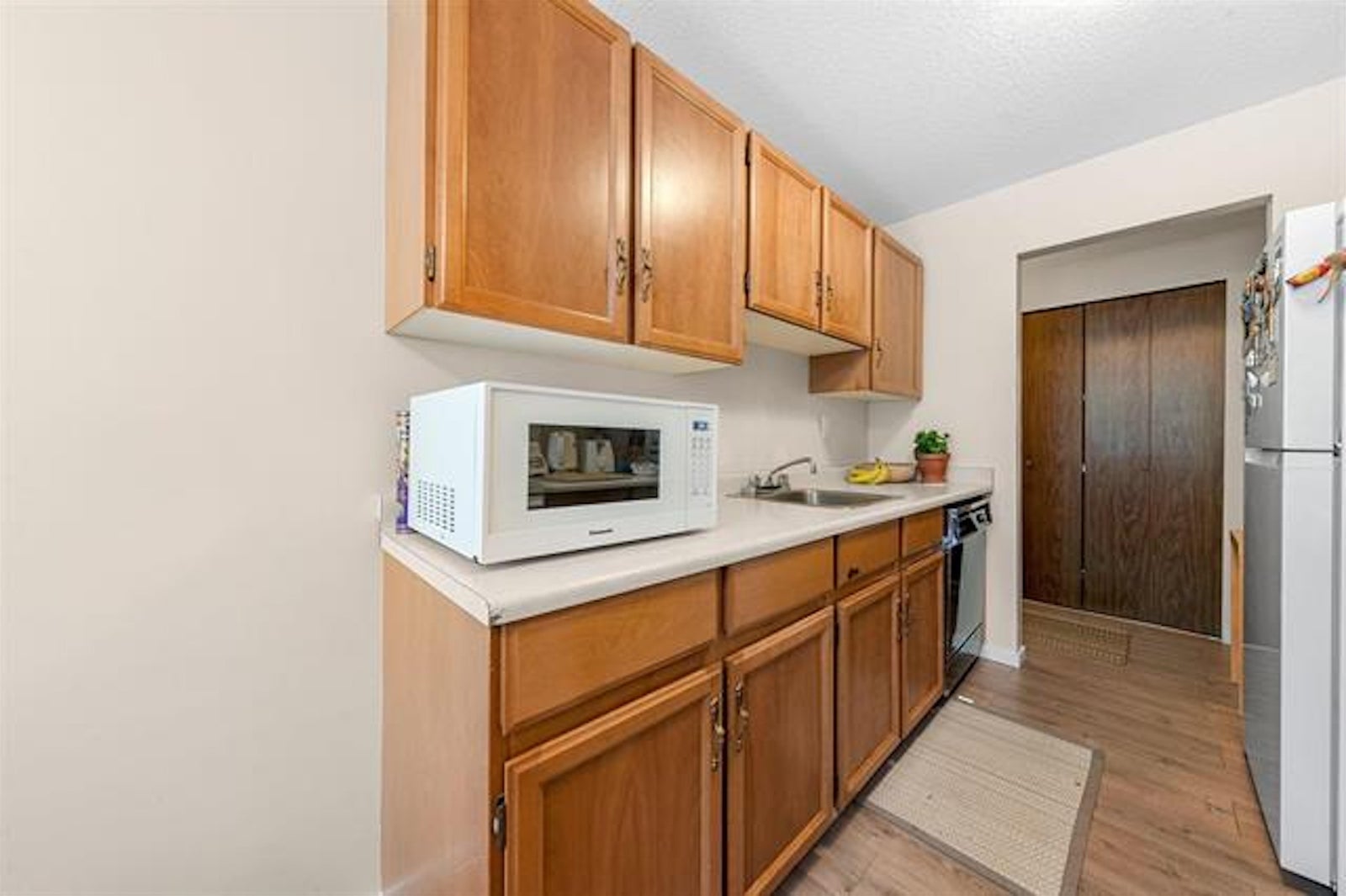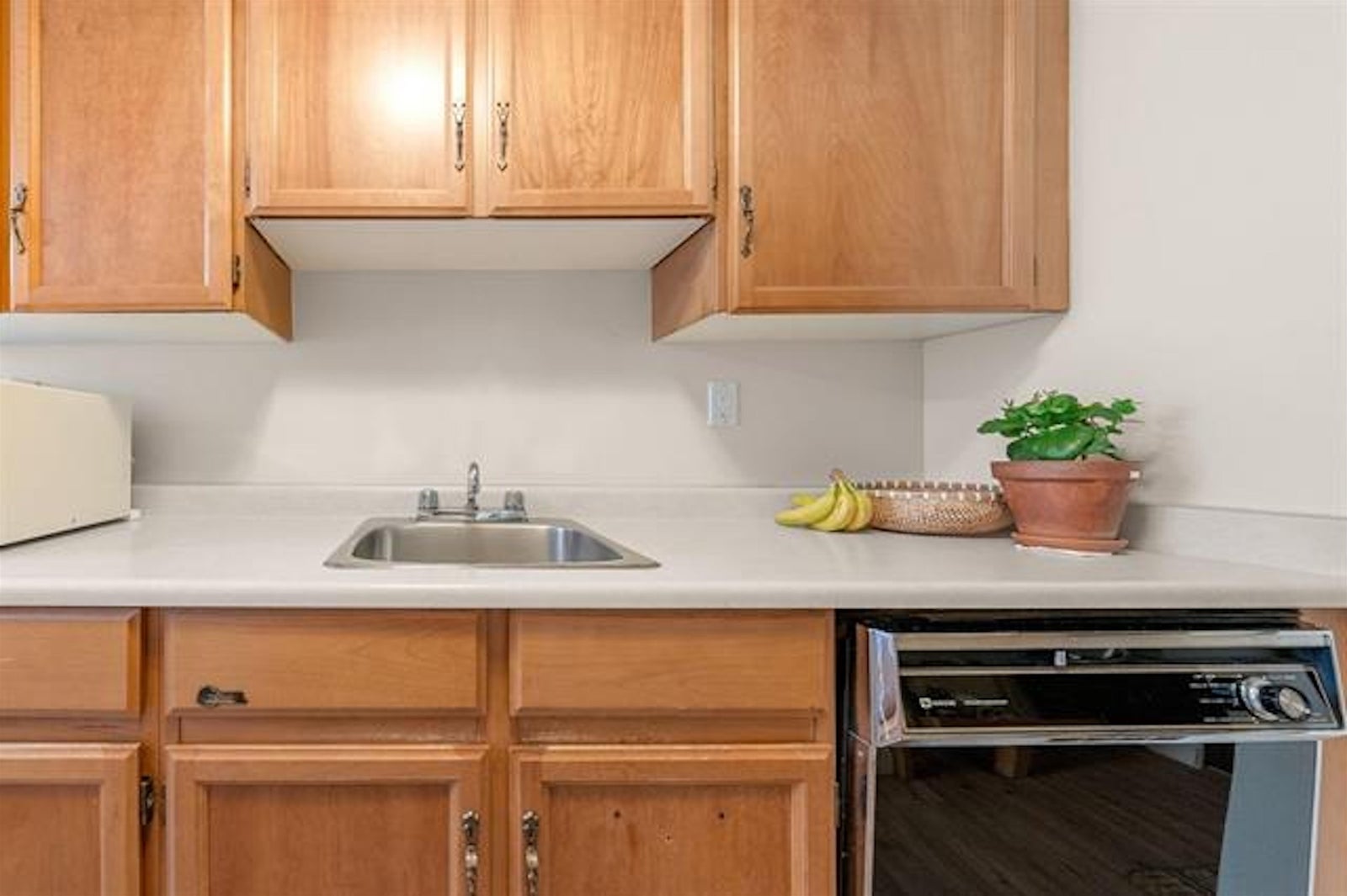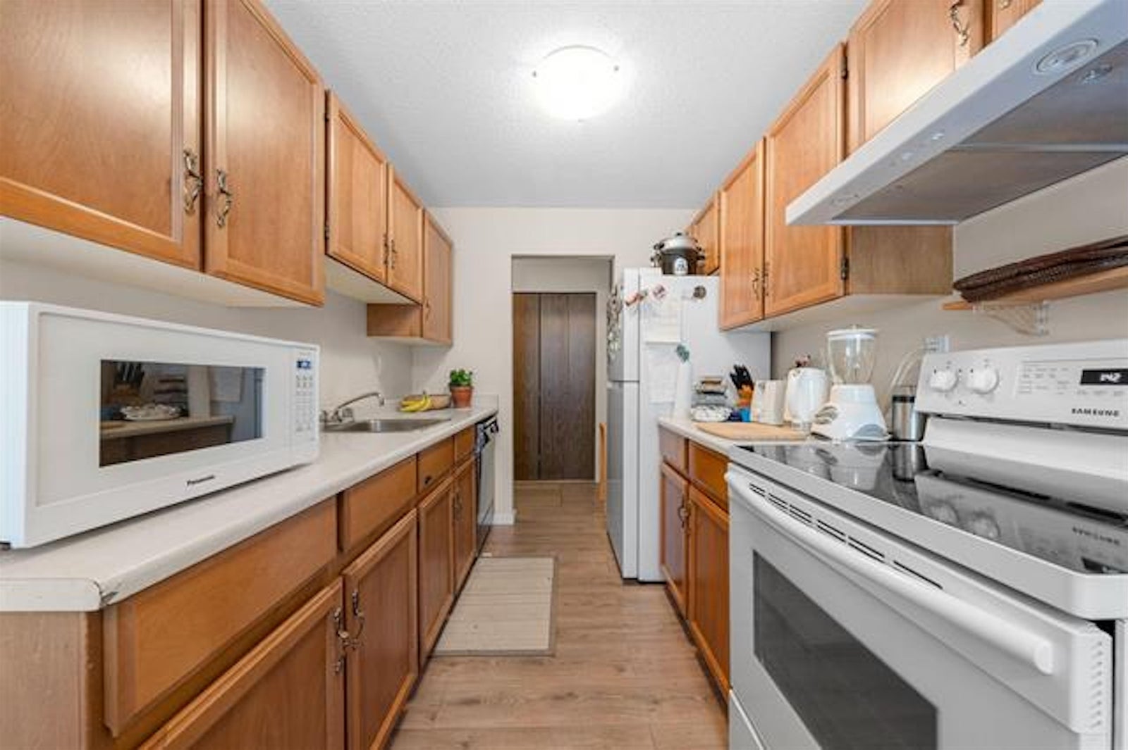 GUILDFORD TALL TIMBERS! Outstanding central location, great for first time buyers, investors or downsizers. Fantastic southeast ground floor corner unit on the quiet side with private balcony. Features two bedrooms, one full bathroom and generous sized in unit storage. Shows well with newer flooring and kitchen appliances. No age restrictions, pets allowed (dog up to 25lbs or one cat).