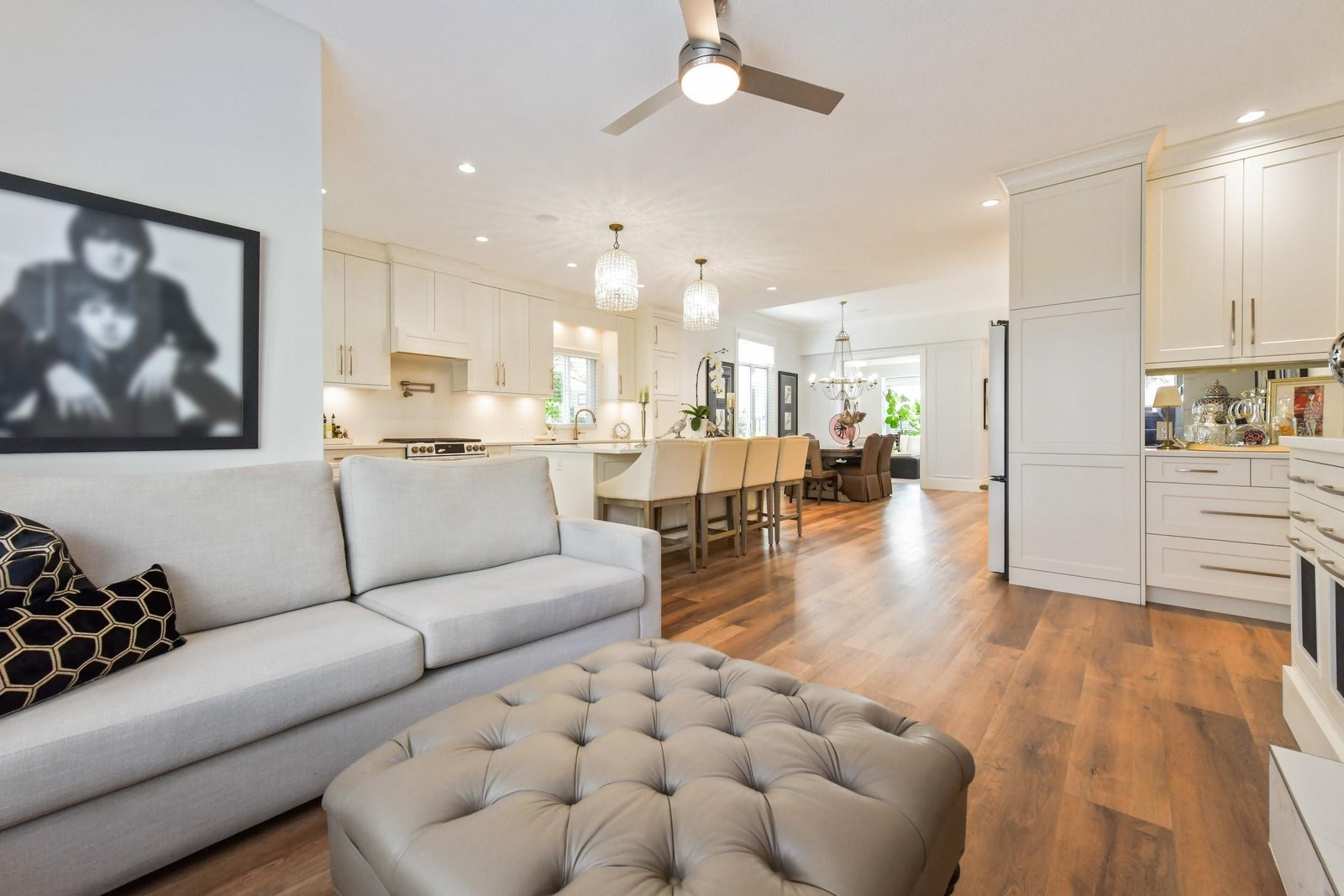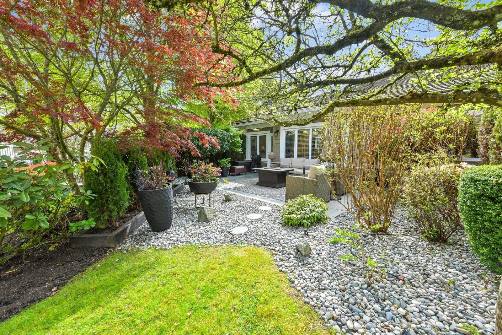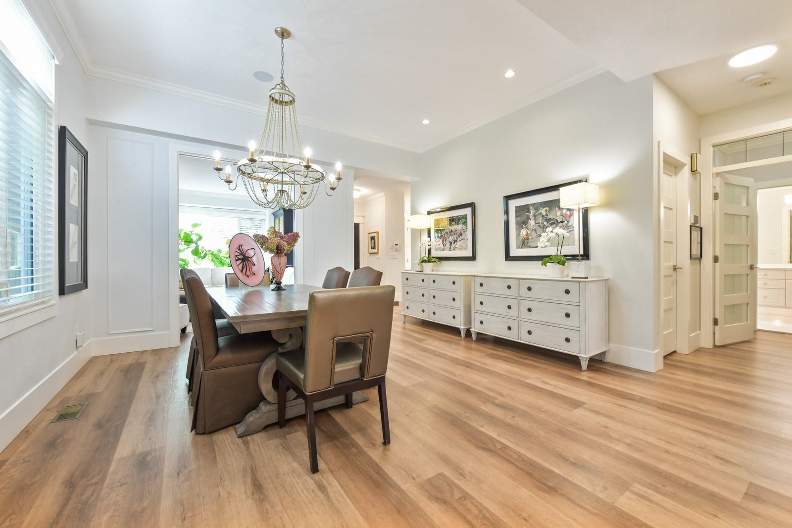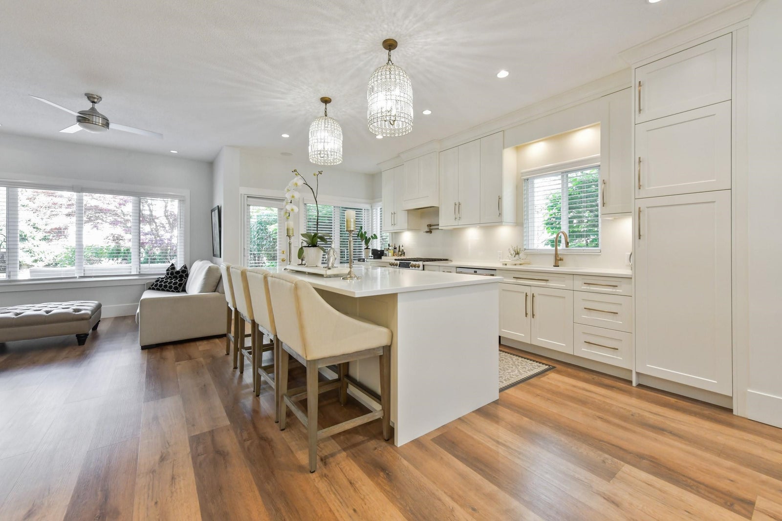 Renovated 1,766 sq ft rancher townhouse in prestigious Deer Run. 2 bedrooms, 2 baths with oversized primary and built-ins. New designer kitchen with island storage, rollout pantry, wine fridge and built-in microwave. Family room features new gas fireplace and built-ins; living room has pocket glass doors. Upgrades include new furnace & A/C, LVP floors, lighting and doors. Expanded patios, side gate, double garage. Steps to Morgan Creek Golf Course, ponds, amenities and transit.