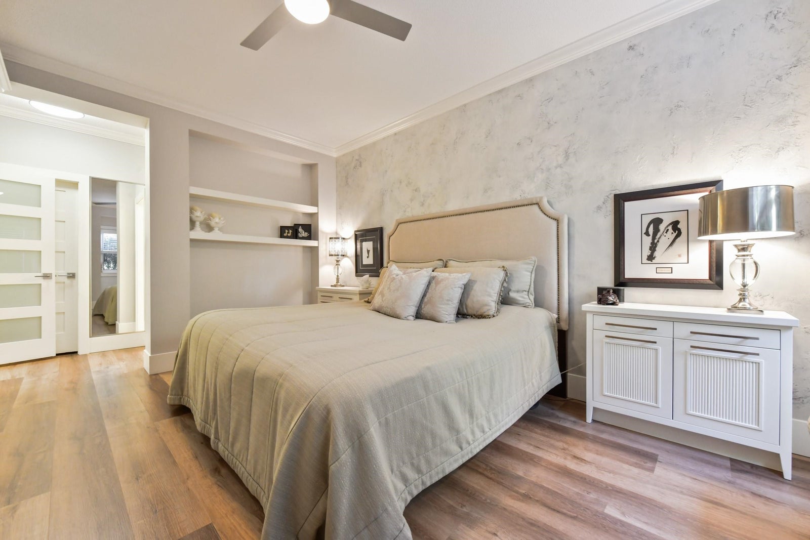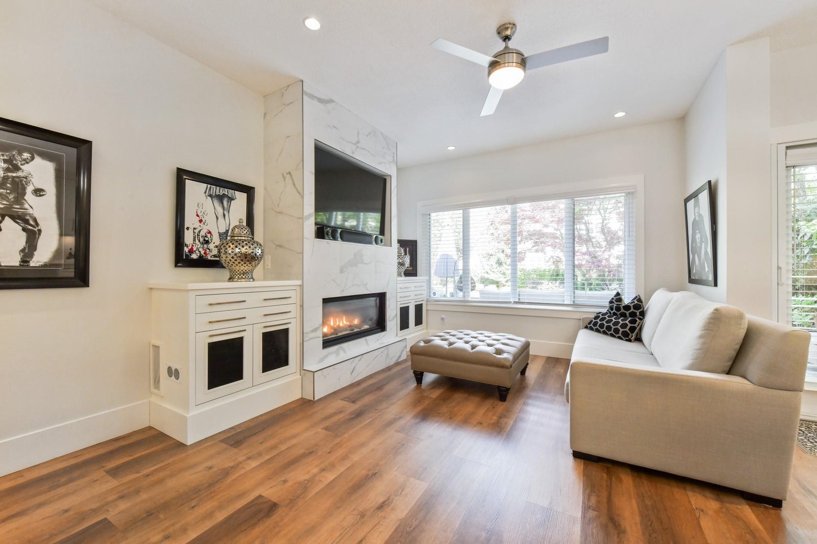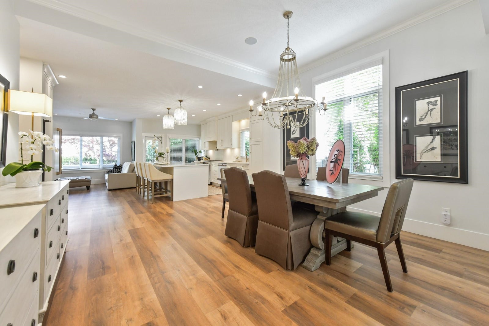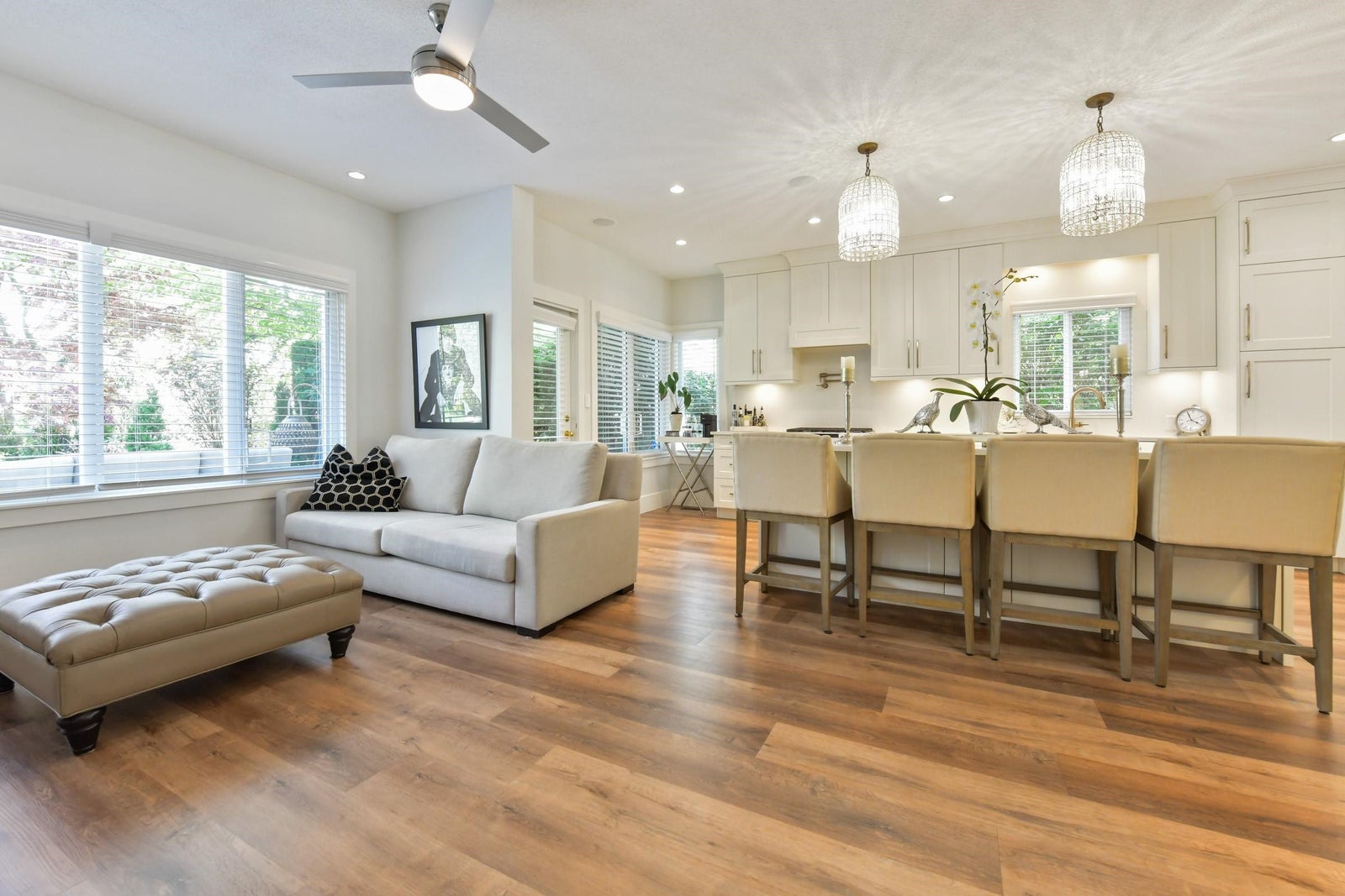 Renovated 1,766 sq ft rancher townhouse in prestigious Deer Run. 2 bedrooms, 2 baths with oversized primary and built-ins. New designer kitchen with island storage, rollout pantry, wine fridge and built-in microwave. Family room features new gas fireplace and built-ins; living room has pocket glass doors. Upgrades include new furnace & A/C, LVP floors, lighting and doors. Expanded patios, side gate, double garage. Steps to Morgan Creek Golf Course, ponds, amenities and transit.